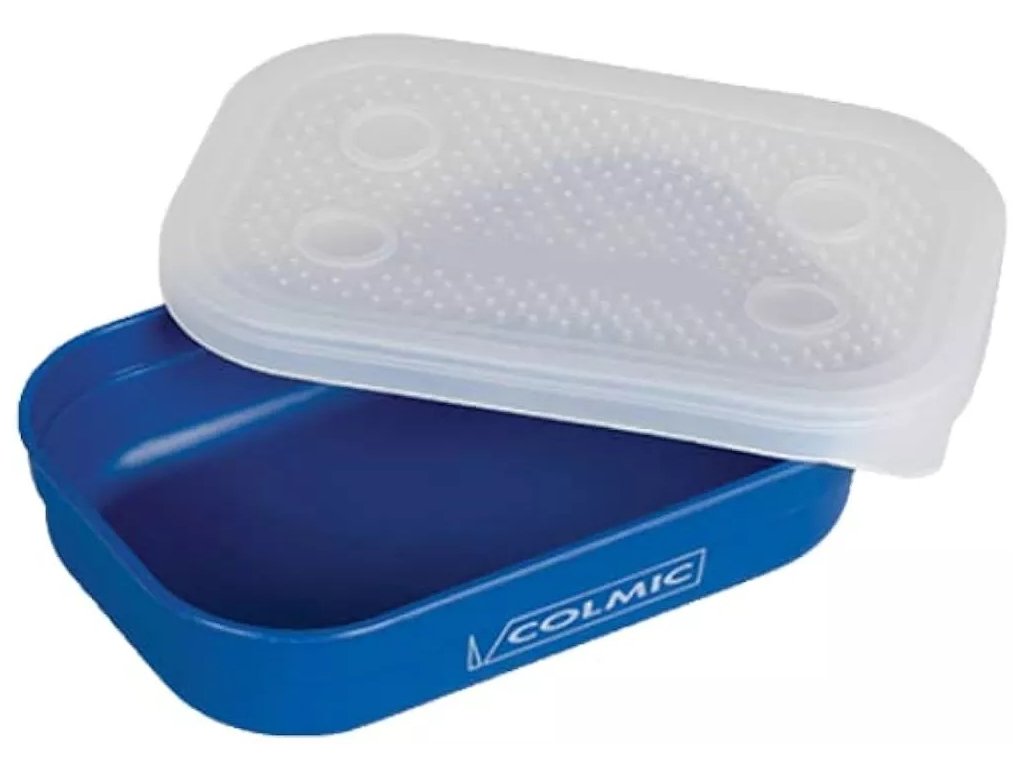 Műanyag doboz élő csalihoz. A dobozok teteje légáteresztő, és a széleken lévő tömítésnek köszönhetően az élő csali nem szökik ki még akkor sem, ha nedves.