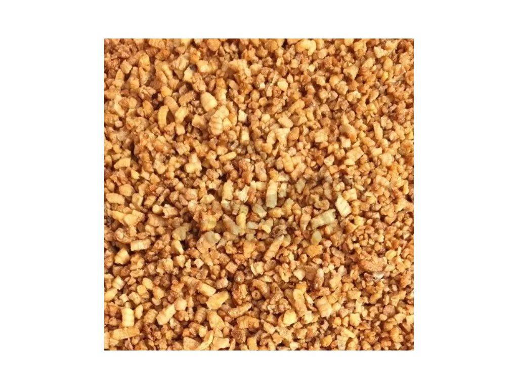 Szárított csontkukac és pinky natur darálva és melaszba áztatva. Tökéletes kiegészítő a etetőanyag gazdagítására. Szerkezetének és tapadósságának köszönhetően önmagában is használható method feeder kosárban vagy klasszikus feeder kosárban. Miután a kosár elérte az alját, a részecskék kis százaléka kioldódik a vízoszlopba, majd azonnal lefelé sodródik, így szagnyomot hagyva a halaknak. Ez egy tisztán természetes termék, hozzáadott színezékek és tartósítószerek nélkül. Újrahasználható cipzáras tasakba csomagolva. Az ideális arány a kész takarmányban 15%. Természetes takarmány tavi halak tenyésztéséhez.