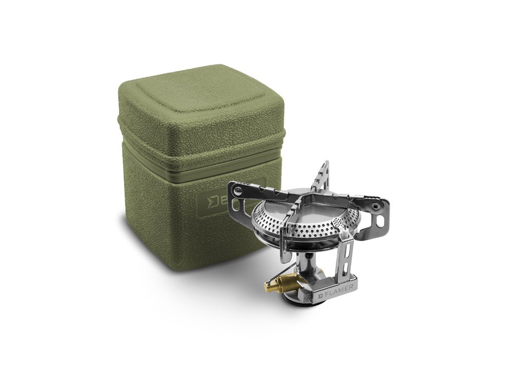A Delphin FLAMER egy gáztűzhely, amelyet kompaktsága, kis helyigénye és nagy teljesítménye jellemez. Tökéletesen alkalmas vízközelben tartózkodásra, túrázásra, kempingezésre vagy más szabadtéri tevékenységekre. Méreteinek és alacsony súlyának (180g) köszönhetően könnyen magával viheti, és szükség esetén könnyen melegíthet vagy készíthet ételt.