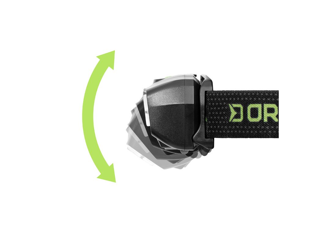 A maximális rugalmasság érdekében az ORBIX fejlámpa mozgatható csuklóval van felszerelve, amely lehetővé teszi a dőlésszög beállítását. Az elasztikus, hossza állítható pánt kényelmes viseletet biztosít mindenkinek.