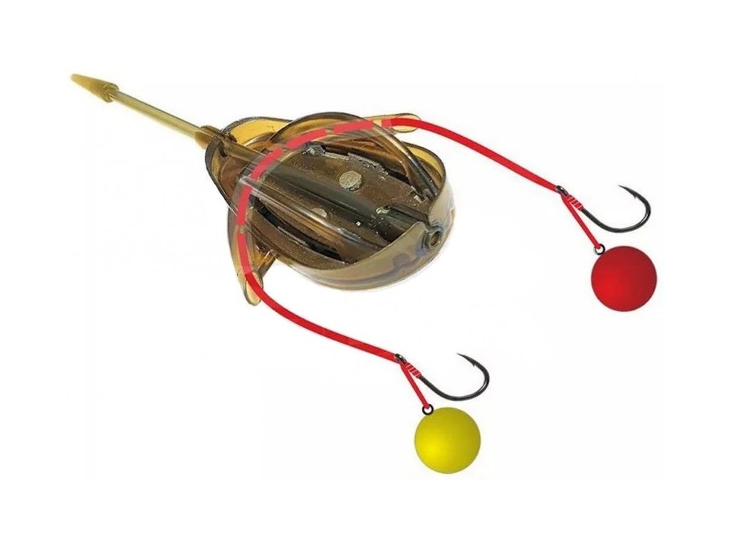 Modern horgász etetőkosár, amellyel 2 előke is használható egyszerre. Ily módon 2 csali kombinálható a horgászat során.