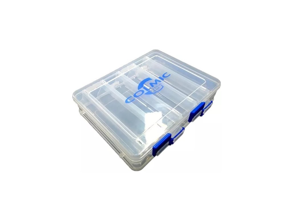 Kétoldalas, 14 rekesszel rendelkező átlátszó doboz, elsősorban wobblerek számára. Méretek: 27 x 17 x 4,8 cm