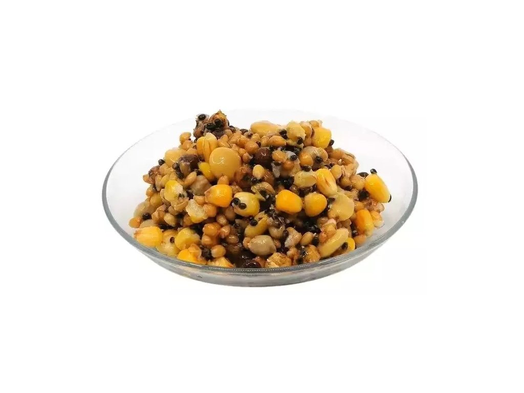 Főzött bojli repce, kukorica és búza keverékét tartalmazza. Alkalmas önálló etetésre vagy takarmányadalékként.