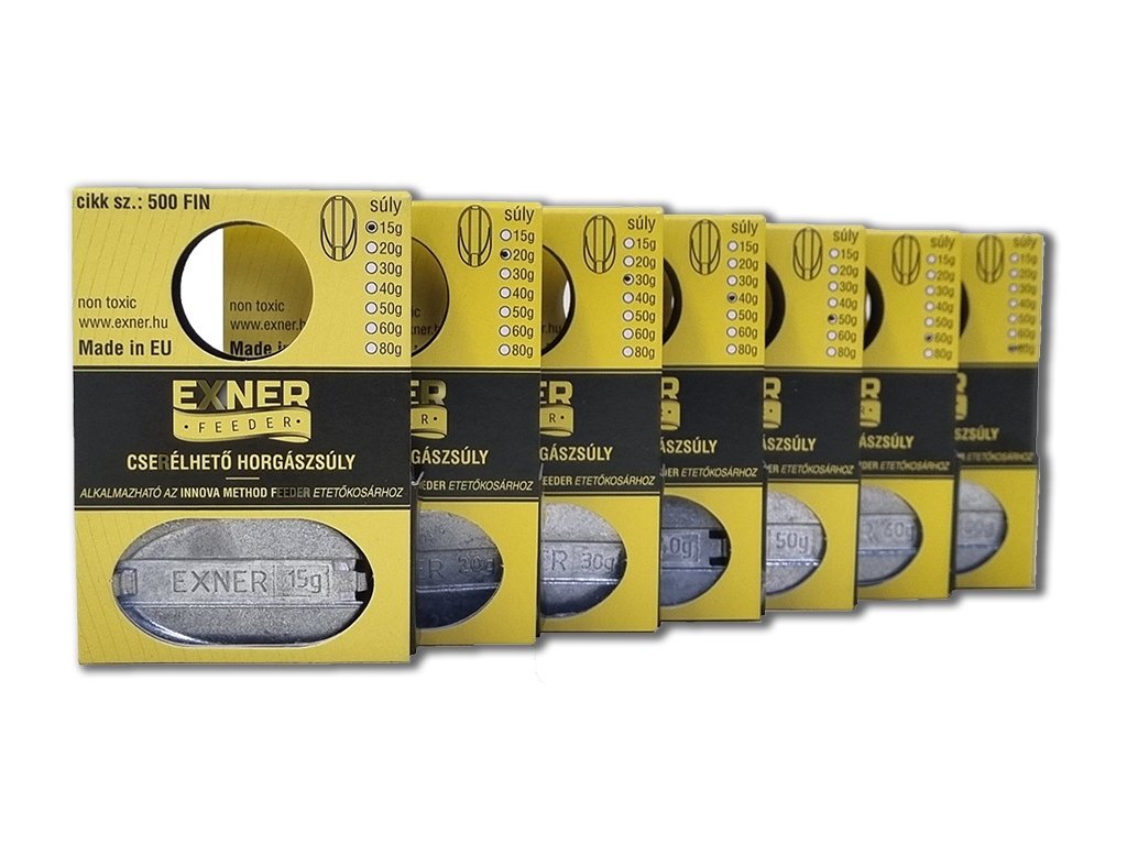 Pótsúly az Exner Innova etetőkosarakhoz. A csomag 1x ötvözött súlyt és 1x szilikon gumigyűrűt tartalmaz.