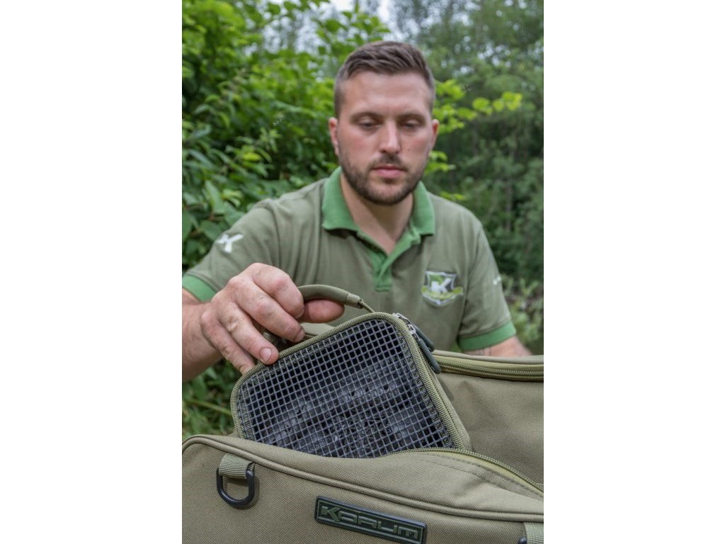A táska tetejét gumírozott hálóból alakították ki, így remek áttekintést nyújt arról, hogy mi is van valójában a táskában. Ellenálló 600D anyagból készült. A táska teljesen kompatibilis más KORU ITM hátizsákokkal (lásd videó).