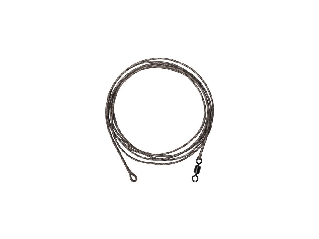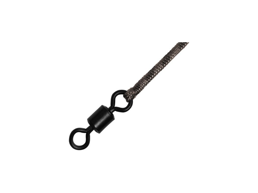 Három előre elkészített, ólmozott zsinórból álló, végösszeszerelésre kész alkatrész készlet. A Delphin THE END Leadcore + Swivel készlet három darab 1 méteres, 45 font teherbírású ólmozott zsinórból és három darab 4-es méretű, fekete matt színű forgóból áll.
