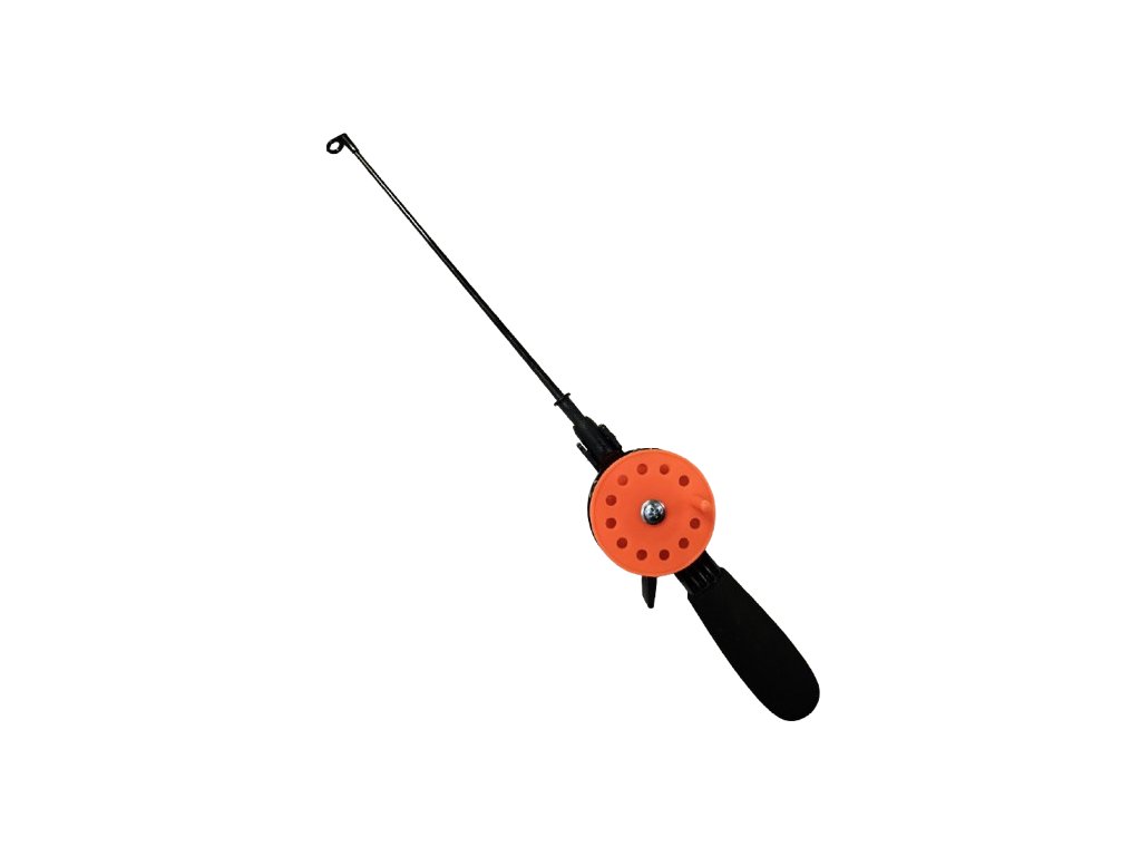 Egyszerű műanyag horgászbot horgászathoz lyukakban. Műanyag orsó fékkel.