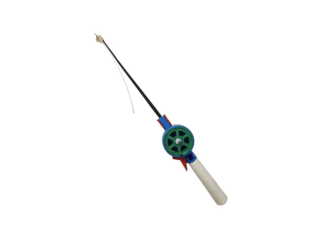 Egyszerű műanyag horgászbot kapásjelzővel a jégre való horgászathoz. Műanyag orsó fékkel.