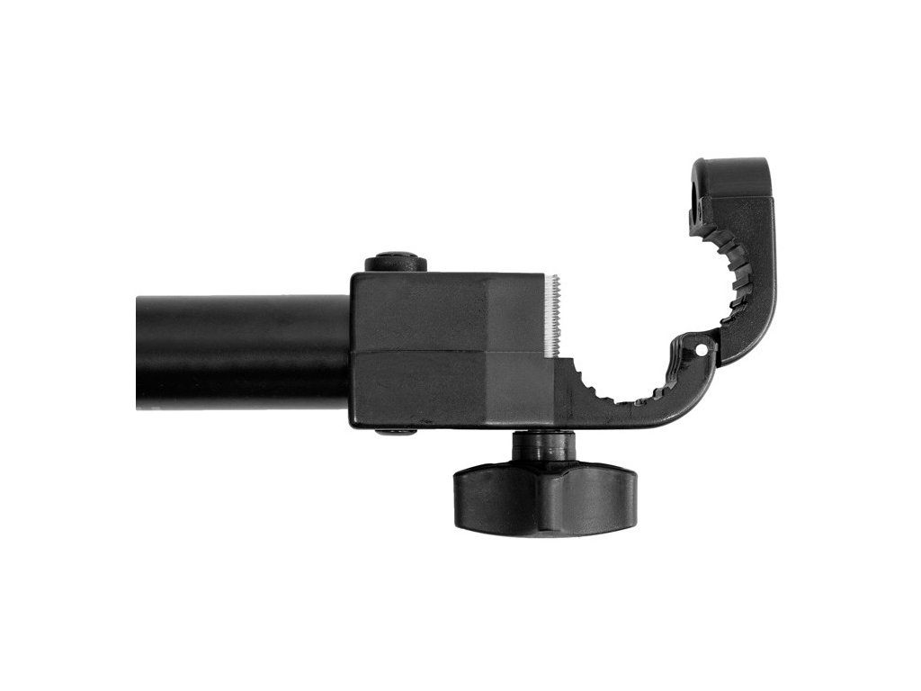 Ez egy évek óta bevált elv egy kivágással és egy nyomórugóval ellátott fémlemezből. Ennek a lábnak további előnye az egyszerű rögzítési rendszer a horgászfotel vázához. Egy csuklós, felhajtható részből és egy menetes rögzítőanyából áll. Ez a rendszer lehetővé teszi a 20-22 mm átmérőjű, kör keresztmetszetű vázak rögzítését. Ez a láb alkalmas a sorozatgyártású horgászfotelok és ágyak túlnyomó többségéhez.