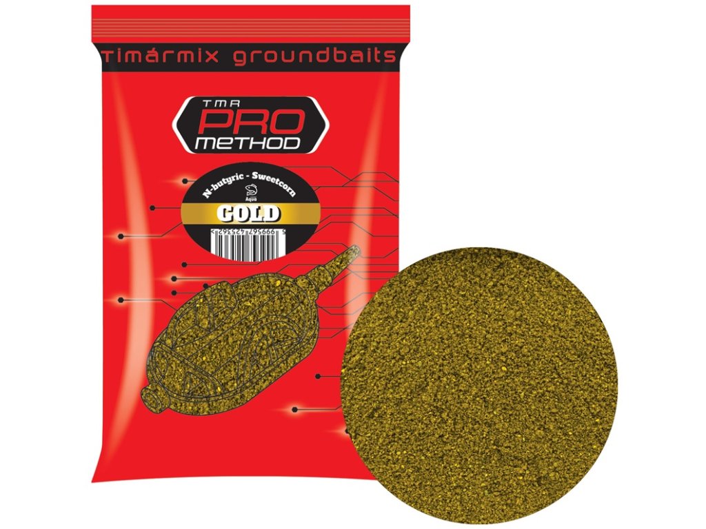 Az arany (vajsav-kukorica) a nyári horgászat kedvelt íze. A Pro Method csalik nemcsak a halakat vonzzák és tartják, hanem kiválóan teljesítenek a versenhorgászatban is! A kis, szinte porszerű szemcseméretet ismert halkajákok (Aqua, Coppens) őrlésével értük el, így egy könnyen keverhető és gyorsan oldódó keveréket kaptunk, ezzel biztosítva a hatékony és sikeres horgászatot.