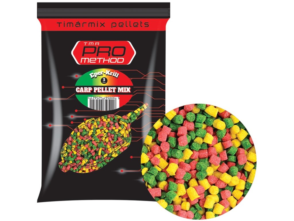 A Pro Method Carp Pellet 1,5 és 3 mm-es változataival széleskörűen felhasználható, önmagában és etetőanyag-adalékként is. Tartalmát tekintve – a 4 évszakos keverékekkel ellentétben – nem dominálnak a szénhidrátok a hal/hal-liszt összetételben, és ízvilágát tekintve mindhárom változat olyan kombinációkból áll, amelyeket a pontyos halak kedvelnek. Ugyanez elmondható a színekről is, mivel a sárga, narancssárga, piros és zöld mind olyan színek, amelyek árnyalatai valószínűleg felkeltik és élénkítik a halak figyelmét.