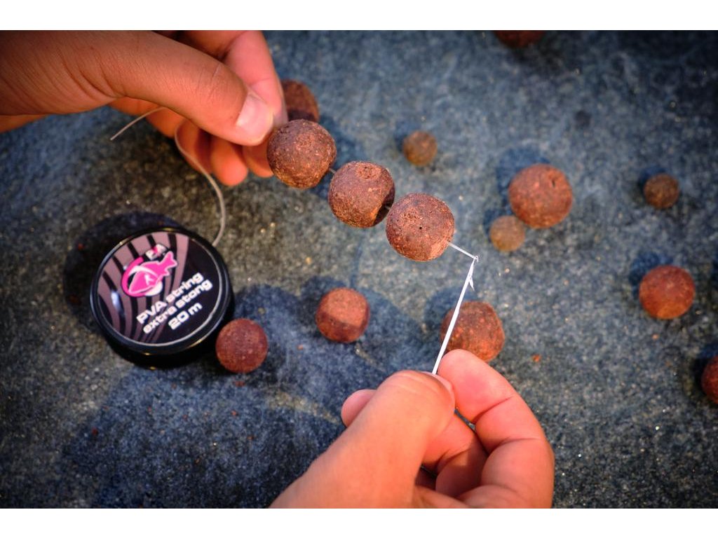 Gombóccal és más csalikkal való használat problémamentesen. Keresztkötésének köszönhetően, a szálunk ellenáll a felrakás extrém erejének is. A bomlási idő 3-6 perc között mozog, a víz hőmérsékletétől és a szerelés módjától függően. Ne felejtse el mindig hagyni helyet a felakasztott csali között, hogy elegendő víz jusson a szálhoz.