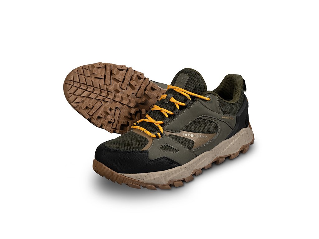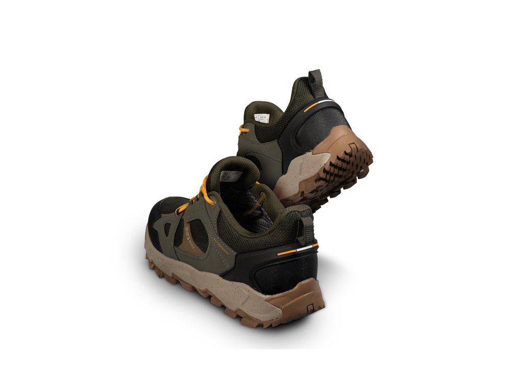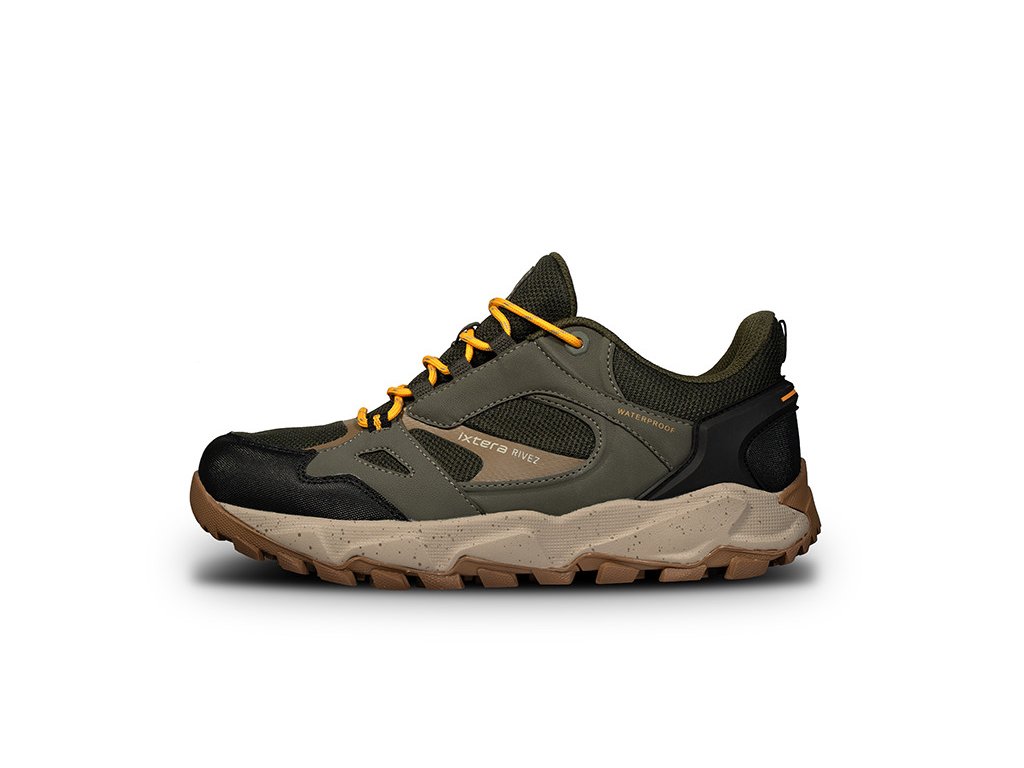A RIVEZ cipők visszafogott kültéri megjelenéssel rendelkeznek, olíva, szürke és fekete színek kombinációjával, feltűnő fűzőkkel, amelyek tulajdonságaikkal párosítva megbízható társat alkotnak minden időjárásban, akár igényes túrára, akár egy könnyű erdei sétára indul. A csomagban egy tartalék pár sötét színű fűzőt is találsz arra az esetre, ha a visszafogottabb megjelenést részesítenéd előnyben.A gyorsabb felvétel érdekében a sarokrészen egy praktikus húzófül is található.