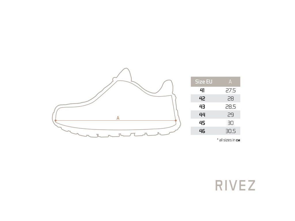 Az RIVEZ modell kényelmes és biztonságos, egész napos viseletre lett tervezve, még igényesebb körülmények között is, ahol minden lépésben magabiztosságra van szükség. A legfontosabb és kulcsfontosságú előny a vízhatlanság, amelyet a cipő belsejében található speciális membrános zokni biztosít. Ennek a megoldásnak köszönhetően nem kell aggódnia a nedves fű, hirtelen eső vagy sár miatt. A lábai minden körülmények között megbízhatóan szárazak maradnak.