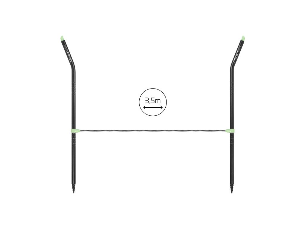 A RangeX BEND két hornyokkal ellátott alumínium rúdból áll. Ezek a hornyok arra szolgálnak, hogy a zsinórt vagy damilt tárolják bennük, és a távolság mérése során ne forduljon elő a zsinór nem kívánt elcsúszása a rúdról. A még nagyobb megbízhatóság érdekében a rudak felső végei meghajlottak, hogy megakadályozzák a zsinór kiugrását a kezelés során. A szürkületben vagy sötétben való egyszerűbb használat érdekében a rudak foszforeszkáló végekkel rendelkeznek, amelyek világítanak, miután megvilágították őket. A földbe való jobb behatolás érdekében a távolságmérő rudak alsó vége szilárd, menetes hegygel van felszerelve. Természetesen van egy 3,5 méter hosszú mérőzsinór is, amely mindkét végén hurkokkal van ellátva a rudakhoz való rögzítéshez. A RangeX BEND alapcsomagot praktikus textil tokban kapod meg, így minden mindig egyben lesz.