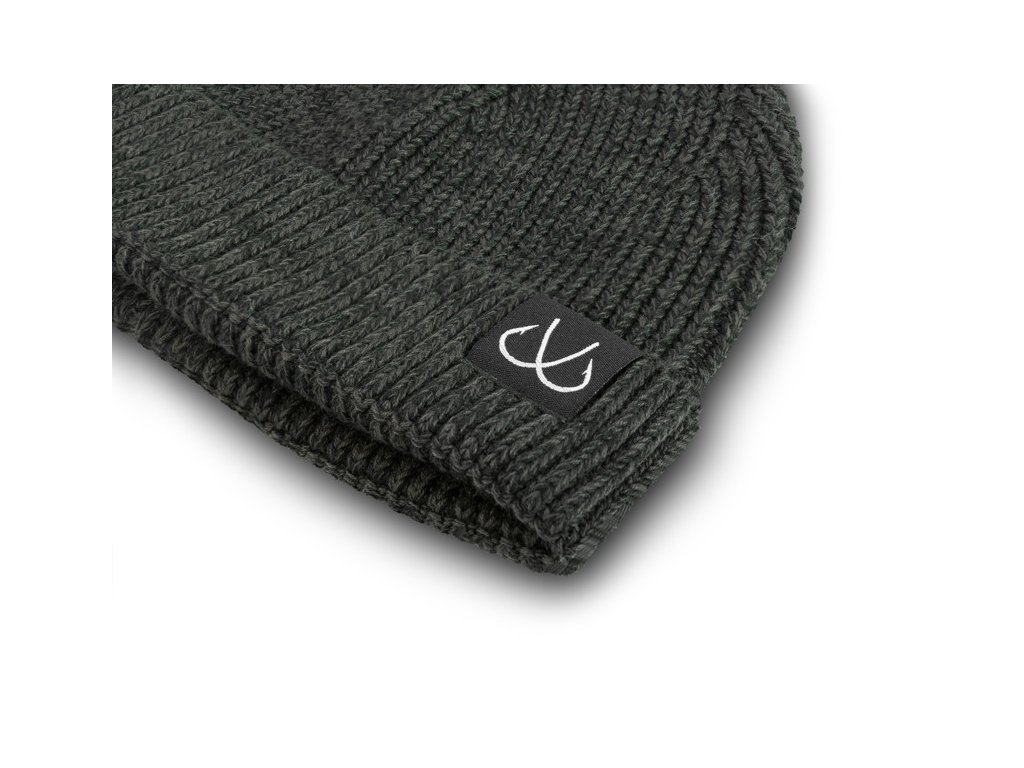 A sapka szabása a fülek fölé érő szegéllyel zárul, amely a bordázott kötött mintával együtt modern megjelenést kölcsönöz a sapkának. A sapka teljes dizájnját két keresztezett horog decens logója emeli ki.