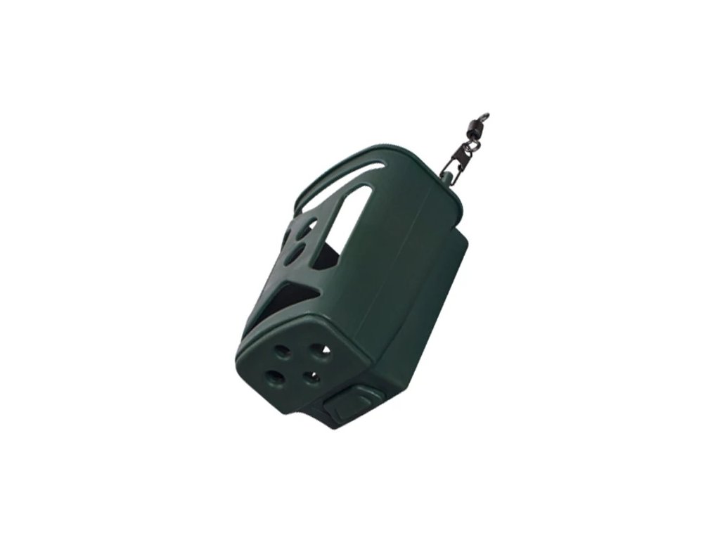 Horgász etetőkosár, elsősorban gyors sodrású vizekhez. Az etetőkosár alsó, lyukacsos része levehető a könnyebb etetőanyaggal vagy pellettel való megtöltés érdekében. Az etetőkosár lyukacsos alja arra szolgál, hogy lassítsa a víz áramlását az etetőkosárban, hogy tartalma ne ürüljön ki gyorsan az áramlásban, hanem éppen ellenkezőleg – fokozatosan szabaduljon fel. Az etetőkosár hátsó részén található súly levehető, és állóvizekben való horgászathoz is alkalmas.