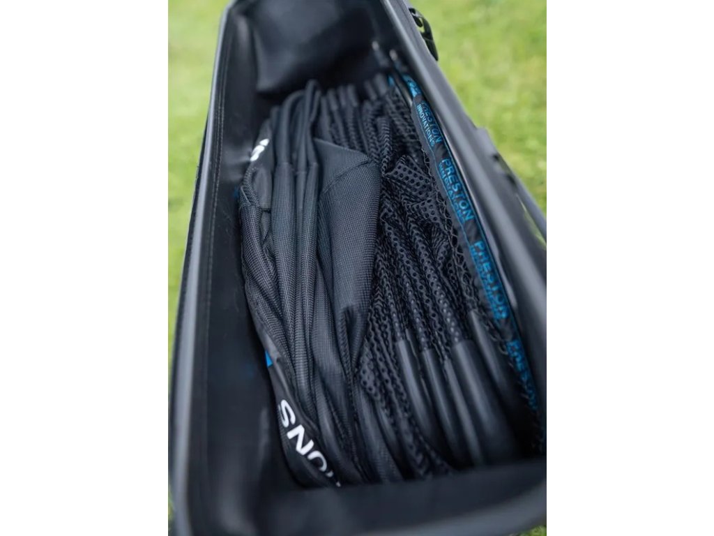A kétrészes botzsák erős varrásokkal rendelkezik, amelyek teljesen vízállóvá teszik a táskát. A belső zseb két botzsák és több merítőfej tárolására szolgál. A további elülső zseb is praktikus, például a versenyszékhez vagy fotelhez való kiegészítők számára.